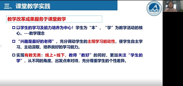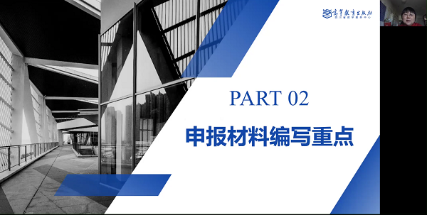 高等教育出版社崔研宏老師從認識一流課程、一流課程申報條件、五類課程申報材料編寫重點等三方面深入、細致的解讀了第三批國家級一流課程申報要點,其中既有成熟的理論指導,也有生動案例分享,更有針對性的指導。來自西南交通大學的國家級一流課程負責人魯麗老師從課程基本情況、課程改革建設、課堂教學實踐和一流課程申報四個方面,分享了一流本科課程建設的思路、方法和心得。