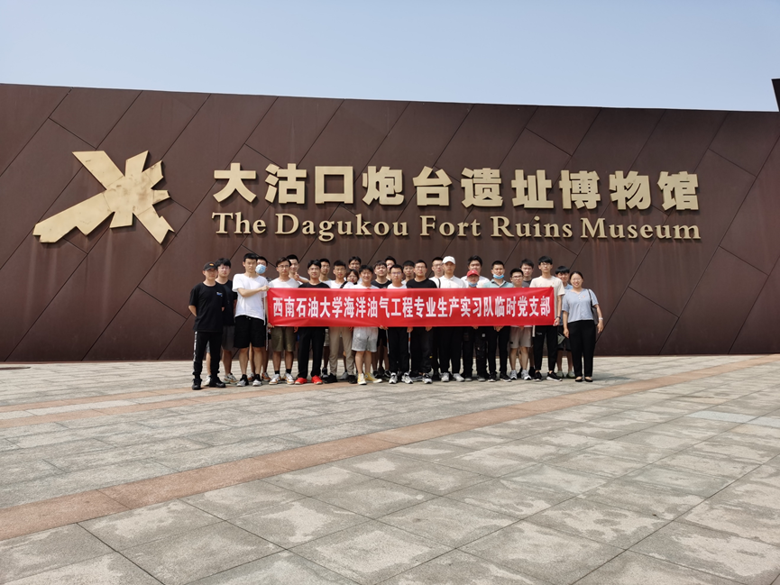 為深入貫徹落實(shí)黨史學(xué)習(xí)教育,在學(xué)思踐悟中堅(jiān)定理想信念,在奮發(fā)有為中踐行初心使命,7月9日,石工院海洋油氣工程專業(yè)在中海油天津工程技術(shù)公司生產(chǎn)實(shí)習(xí)之余,組織26名師生黨員參觀沽口炮臺(tái)遺址博物館,旨在挖掘紅色元素,賡續(xù)紅色血脈。