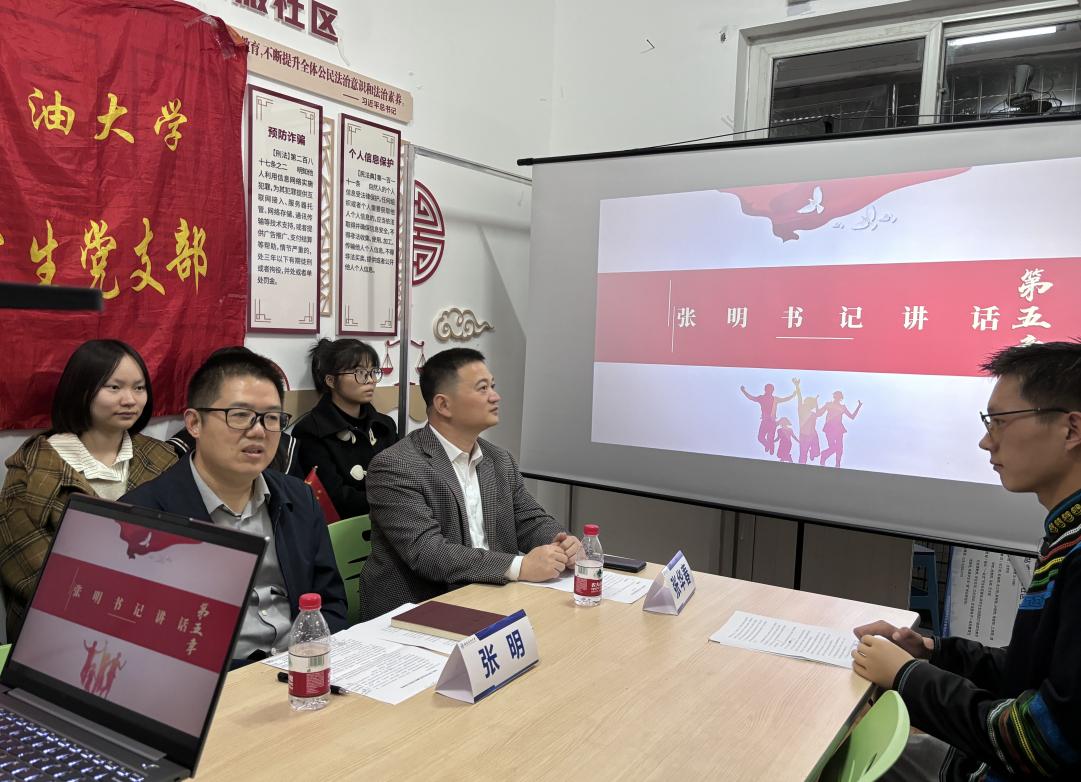 活動尾聲,張明書記進行了總結發言。張書記提到,實施“一站式”學生社區綜合管理模式建設,是深入貫徹習近平總書記關于教育的重要論述,提升新時高校黨建和思想政治工作系統化、精細化的重要改革舉措。當前學校扎實推進“一站式”學生社區建設和“講、賽、踐”活動,旨在滿足學生需求、培養學生素質、推動學校發展。今天的黨日活動精心設計、各環節環環相扣,很有意義。希望青年學生黨員以“初心”定航向,以“勤學”作舟楫,以實干展“風帆”,踔厲奮發,勇毅前行。