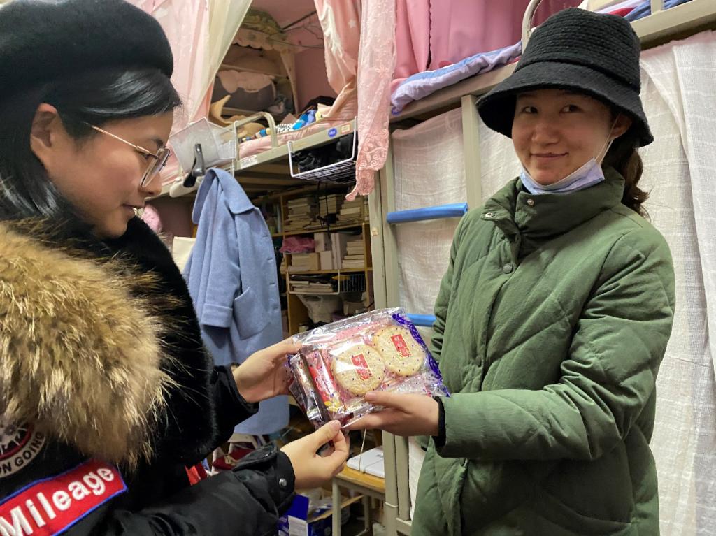 精心準備的零食、飽含美好的寓意、真誠實意的祝福,賦予在一份份禮包中,在考研前夕傳遞到每一位考研學子手上。收到加油禮包的同學們在驚喜的同時更被深深地感動,紛紛表示:“謝謝老師和同學們,明天我一定加油!”“最后兩天,我一定會一如既往,穩定發揮,我一定可以的?!薄翱佳斜揪途o張,壓力也大,突然發現其實有這么多人在關心我,我現在感覺考研也沒那么可怕了,謝謝你們!”