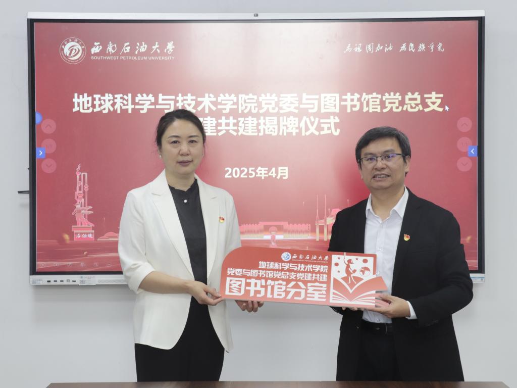 4月16日,地科院與圖書館開展黨建共建,簽訂黨建共建協議并共同為“西南石油大學圖書館地球科學與技術學院分室”揭牌。學校圖書館黨總支書記、館長楊春麗,黨總支副書記、副館長李丹,地科院黨委書記趙曉明,黨委副書記、紀委書記張勇出席會議。雙方各黨支部、科室老師代表參會,會議由張勇主持。