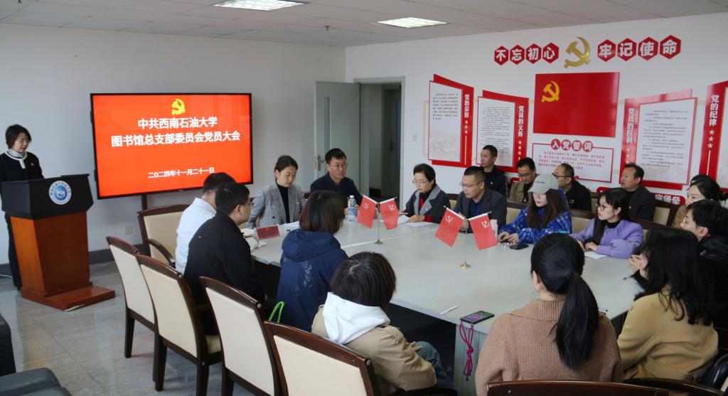 11月21日上午,中共西南石油大學圖書館總支部委員會黨員大會在圖書館“黨員之家”召開。圖書館黨總支書記楊春麗作工作報告,大會選舉產生了新一屆圖書館總支部委員會。學校黨委組織部副部長郭龍出席大會并致辭。大會由圖書館副館長李丹主持。
