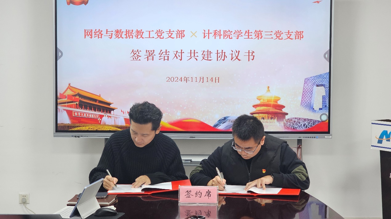 為促進師生黨員之間的交流互動,緊緊圍繞學生最關心的問題,扎扎實實為學生辦實事,服務好學生的成長成才,11月14日上午,網信中心網絡與數據教工黨支部和計算機與軟件學院學生第三黨支部開展了結對共建活動。計算機與軟件學院黨委副書記、紀委書記劉翔、網信中心黨總支副書記、副主任汪立欣、學生第三黨支部書記吉子日赫、網絡與數據教工黨支部書記王慶剛及全體黨員參加活動。