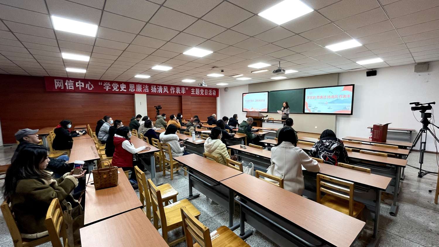 為深入推進黨史學習教育,激勵全體人員學史明理、學史增信、學史崇德、學史力行,感悟初心使命,筑牢廉潔防線,12月2日下午,中心在思學樓C409教室組織全體黨員開展“學黨史 思廉潔 揚清風 做表率”主題黨日活動。活動由直屬黨支部書記肖曉華主持。