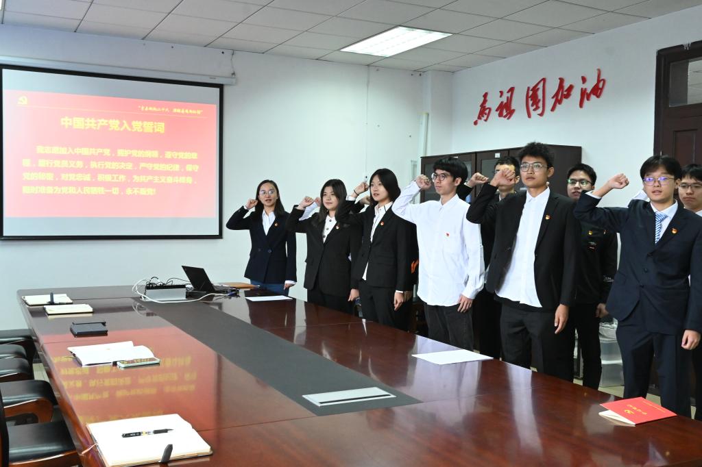 會上,蒲勇部長、陳俐宏副部長為新發展學生黨員佩戴黨徽,電信院自動化專業學生黨支部書記羅靜帶領全體新發展黨員重溫入黨誓詞。在鏗鏘的誓言中,學生黨員的初心受到洗禮,理想信念更加堅定。