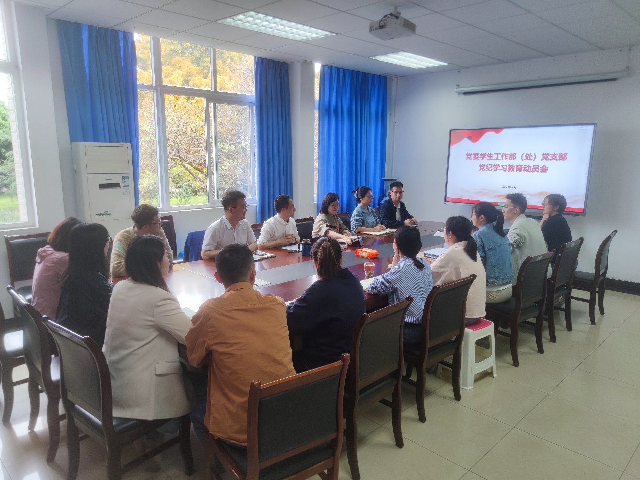 4月23日下午,學工部黨支部全體黨員在思學樓A201組織開展黨紀學習教育,積極響應中央黨的建設工作領導小組關于黨紀學習教育的部署要求,認真推進黨紀學習教育。
