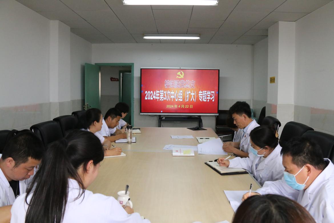 2024年4月22日,校醫院黨總支召開了2024年第3次中心組(擴大)專題學習,校醫院黨總支書記胡俊主持會議,班子成員、黨總支委員、科室主任參加會議。