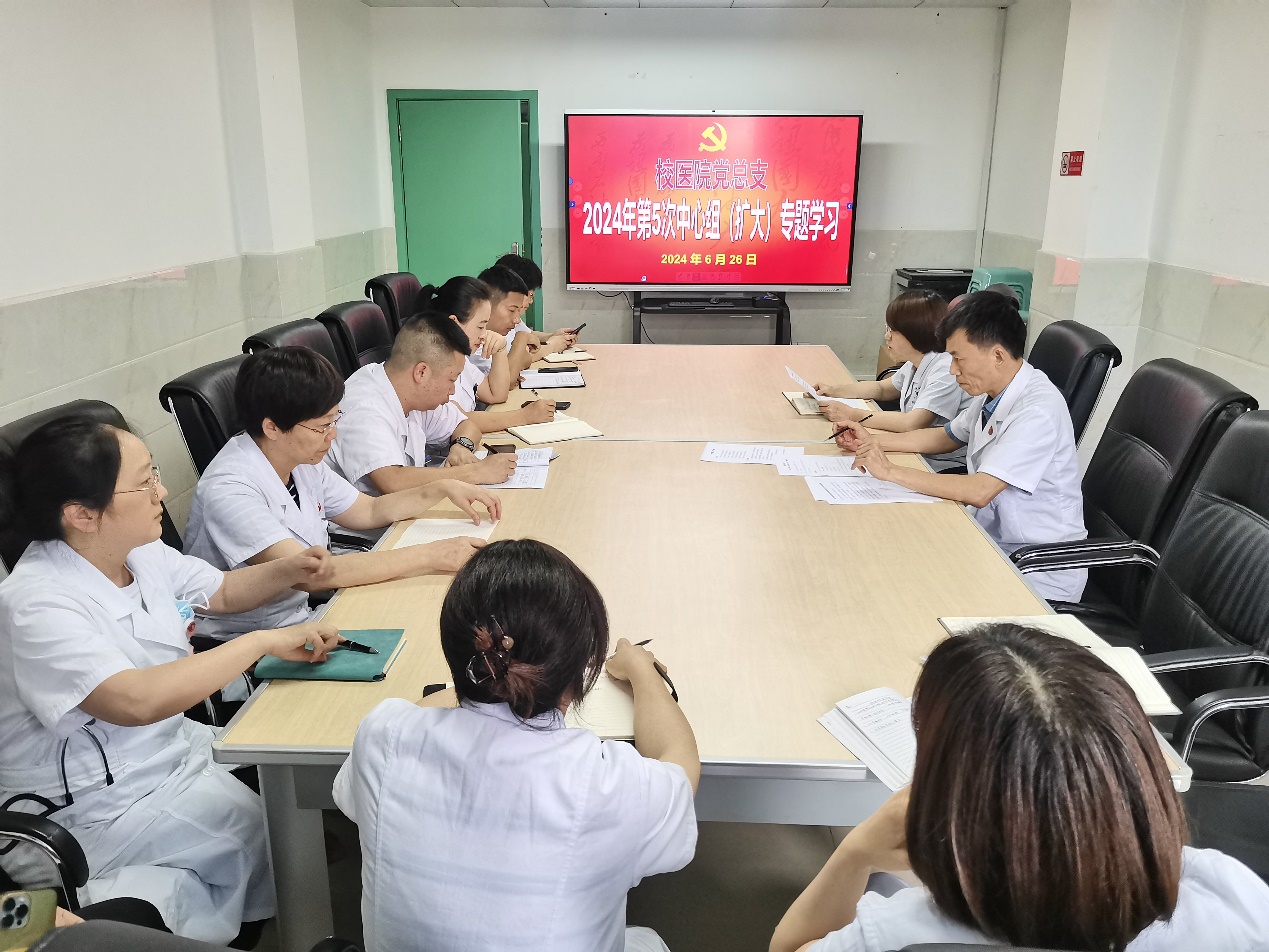 2024年6月26日,校醫院黨總支召開2024年第5次中心組(擴大)專題學習,黨總支書記胡俊主持會議,班子成員、黨總支委員、支部書記、科室主任參加會議。