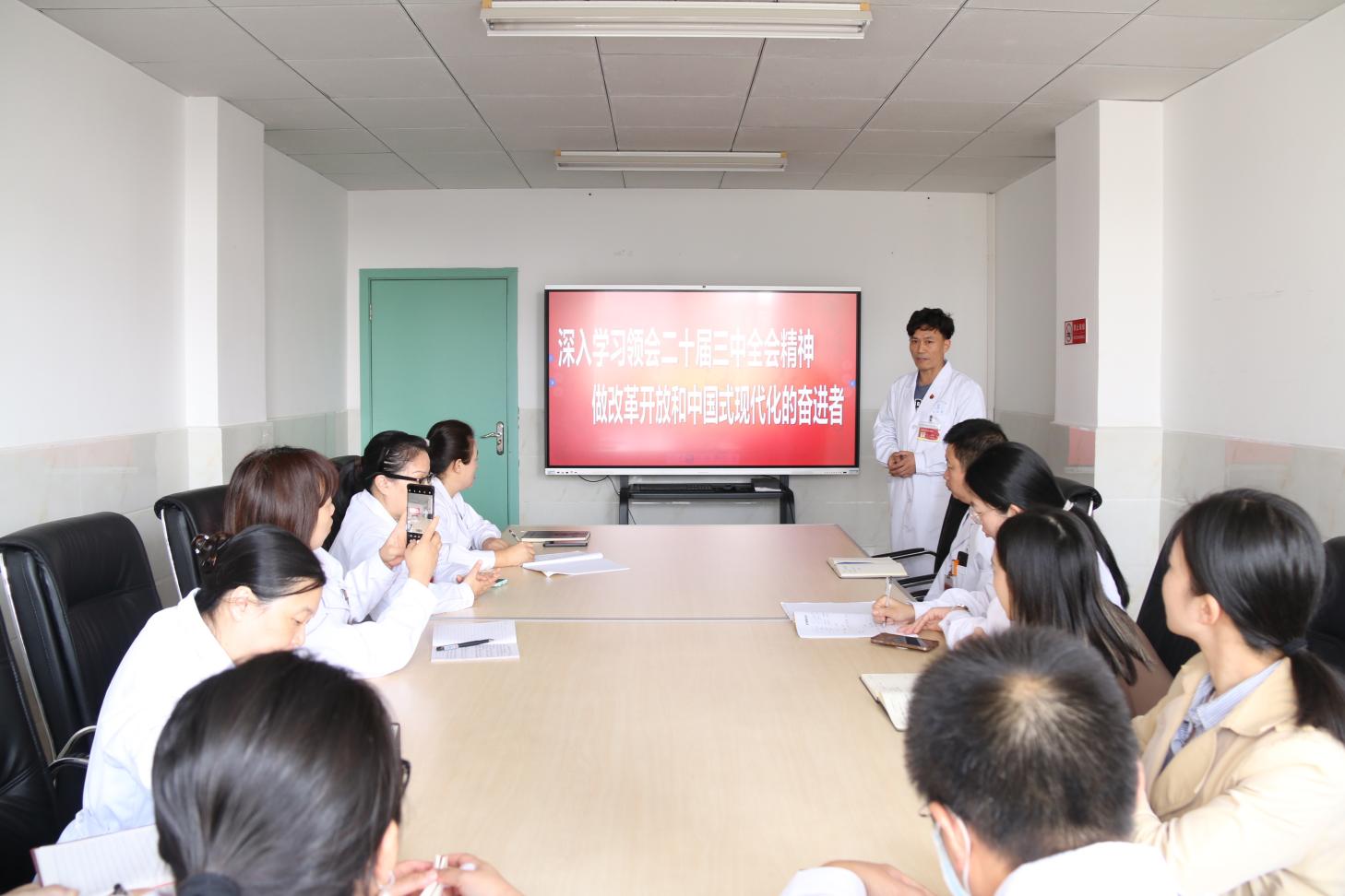為深入學習貫徹黨的二十屆三中全會精神,深刻領會全會的重大歷史意義,推動全會精神在校醫院落地生根,10月23日16:00點,校醫院黨總支書記胡俊以“深入學習領會二十屆三中全會精神做改革開放和中國式現代化的奮進者”為主題,為全體黨員帶來了一堂生動的專題黨課。