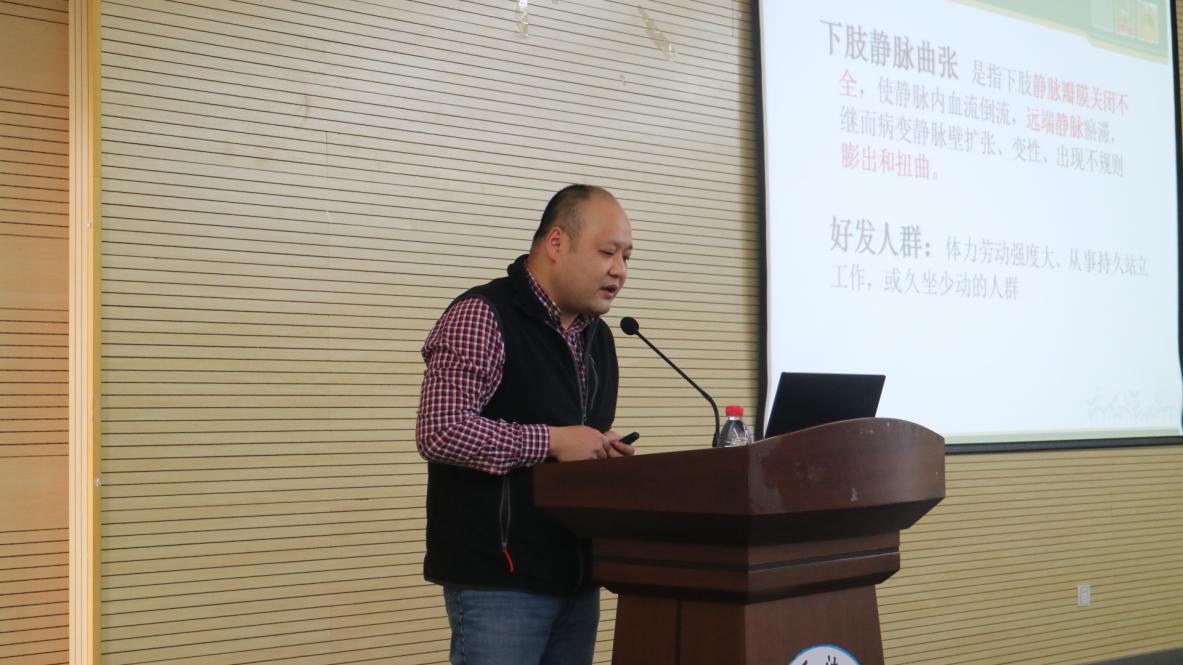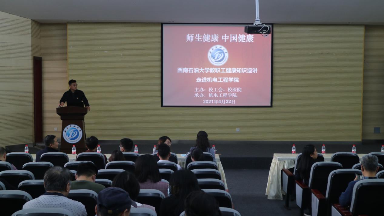 學黨史、見行動。4月22日15:00,2021年度教職工健康知識巡講第一次講座在機電工程學院開講了,機電工程學院的老師們跟隨校醫院中醫外科醫生趙輝、中醫康復科醫生王涵的講解,深入了解了教師常見疾病頸椎病、靜脈曲張的防治知識。