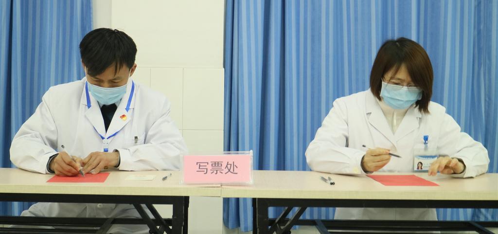 胡俊書記與張繼紅院長在寫票處認(rèn)真填寫選票