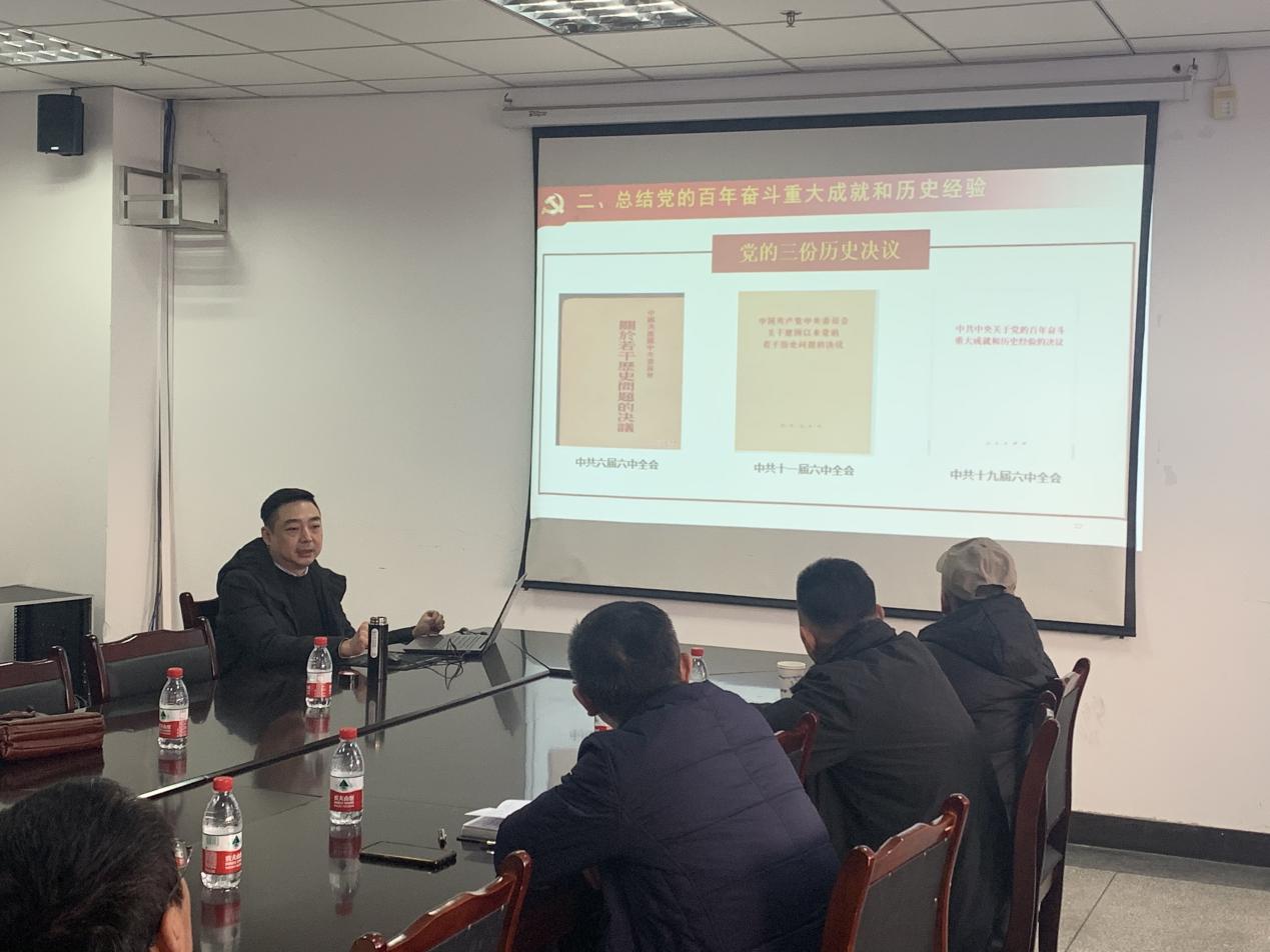 會上,黃笛老師介紹了十九屆五中全會以來中央政治局的工作,充分講解了第三份歷史決議的背景原因、重大成就、歷史經驗和工作要求,指出了全面貫徹習近平新時代中國特色社會主義思想的必要性,企業應切實加強黨史學習教育,以迎接中共二十大的召開。隨后,資產公司黨總支書記鄭世文對講座內容進行了總結。他強調,學習宣傳貫徹黨的十九屆五中全會精神,是當前和今后一個時期全黨全國的重要政治任務。各單位要嚴格落實學校的部署及要求,繼續全面系統入學習貫徹十九屆五中全會精神,按照學校的要求,以高度的政治自覺、思想自覺和行動自覺,把全會精神落到實處。