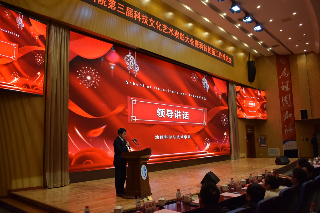 12月29日下午3時,為了表彰先進,樹立典型,深化富有地科特色的學風建設內涵,地科院第三屆科技文化藝術表彰大會暨科技創新工作推進會在圖書館學術報告廳隆重舉行,回顧了2017——2018年度地科院學子取得的驕人成績。