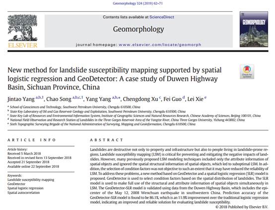 西南石油大學空間大數據挖掘研究所(以下簡稱:空間所)的地理信息科學(GIS,Geographic Information Science)專業科研團隊在楊洋和宋超兩位教師帶領下,經過三年潛心研究,從理論創新、學科融合、區域實驗到實際應用攻克了這一難題,其最新研究成果先后發表于國際高水平地學ESI期刊,包括一區期刊《Landslides》和二區期刊《Geomorphology》。