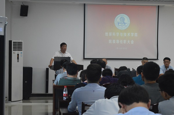 6月6日下午,地球科學與技術學院在明辨樓D404召開院領導任職大會,副校長巫曉兵、組織部部長侯忠建出席會議,學院領導及教職工代表參加此次會議,會議由院黨委書記朱江主持。