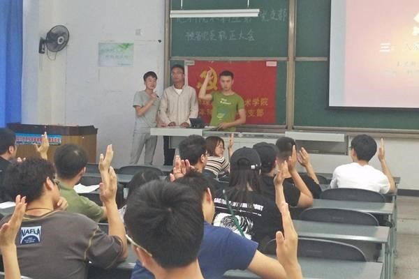 下午四點(diǎn)半,在明辨樓C108,支部大正式開始,全體起立奏唱國(guó)歌。首先是論支部黨員轉(zhuǎn)正,王昱超等7位預(yù)備黨員匯報(bào)了一年來(lái)的有關(guān)情況,重點(diǎn)在對(duì)黨的認(rèn)識(shí)、學(xué)習(xí)工作以及一年考察期內(nèi)的表現(xiàn)等方面進(jìn)行了詳細(xì)匯報(bào),支部成員認(rèn)真聽取了匯報(bào),并提問(wèn)、討論。匯報(bào)結(jié)束后,7名轉(zhuǎn)正申請(qǐng)人暫時(shí)離場(chǎng),支部全體正式黨員進(jìn)行表決。在熱烈的掌聲中,會(huì)議通過(guò)了《關(guān)于發(fā)展王昱超等7位同志為中共正式黨員的決議》。王昱超等7名同志順利轉(zhuǎn)正,成為中共正式黨員。