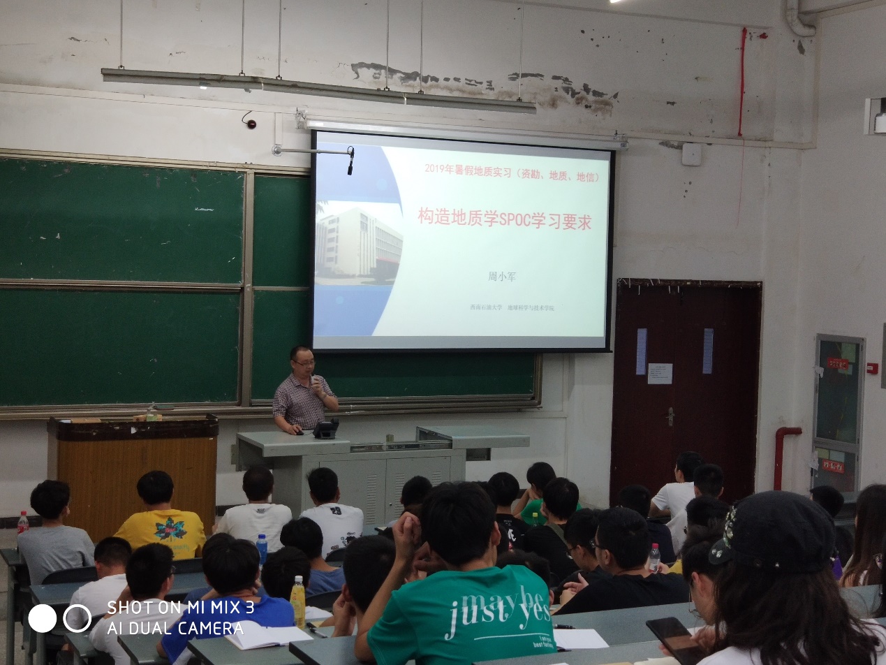 在會上,范院長對此次野外實習做出幾點要求,一是強調野外實習的安全問題,提醒同學們保護好自己;二是要求同學們在實習期間要遵守校紀校規,并在學習上嚴格要求自己;三是要注意自己的言行,向當地居民展示我們石大人優秀的風采。周小軍老師主要對納入實習成績的網課進行了講解,為同學們解答了關于網課學習的一些疑惑,并提醒同學們注意網課截止時間。最后由曾德銘老師就此次實習各項內容進行了細致入微的說明,例如實習具體的時間、地點、分組等安排。還貼心的提醒同學們穿便于行動的衣服以及帶好所需物品。曾老師還提到,野外實習過程中,一切行動聽指揮,切忌擅自行動或單獨行動。