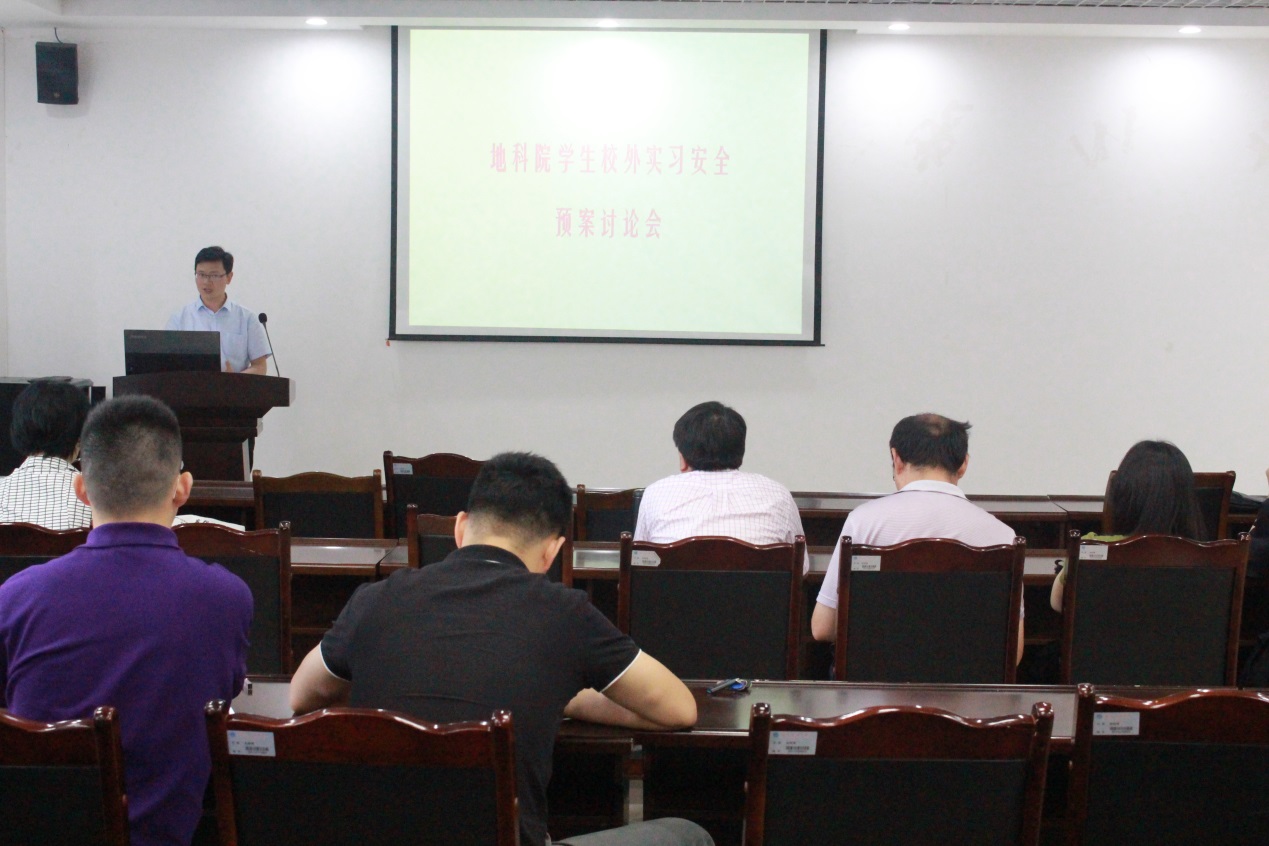 范翔宇副院長首先向大家重申了學校《關于做好防汛減災和地質災害防范工作的通知》(2019.6.19)、學院《關于做好防汛減災和地質災害防范工作的通知》(2019.6.29)以及地科院行【2018】13號文件、地科院行【2018】24號文件、地科院行【2018】25號文件精神,強調本次交流重在互相學習、取長補短,力爭讓我們的實習安全預案編寫更加科學有效。接下來,各專業的校外實習負責人就本專業安全預案編寫概況進行發言交流。各位負責人介紹各自專業實習的基本情況和實習計劃,重點展示實習過程中可能會遇到各種風險點及相關預案。為了防止在實習期間發生安全事故,老師們一致認為要做好實習前的各項準備工作,向學生們明確實習紀律、普及相關急救知識。