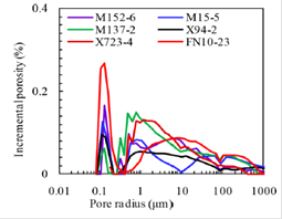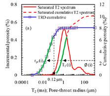 (c)核磁T2譜 (d)基于核磁共振的孔喉分布