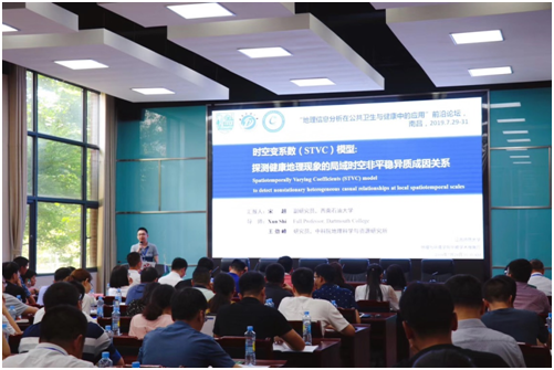 2019年7月29-31日,由國際華人地理信息協會(CPGIS)主辦,中國地理學會健康地理專業委員會協辦的“地理信息分析在公共衛生與健康中的應用”前沿論壇成功開展。該論壇是純學術性質的,并采取“成對邀請”、“新銳-資深”搭配這種新穎形式的高端學術論壇。在健康GIS研究領域做出有一定代表性工作的11位中青年學者對他們的最新前沿工作進行了較深入和系統的報告,并邀請了他們的導師或資深合作者參與現場討論。