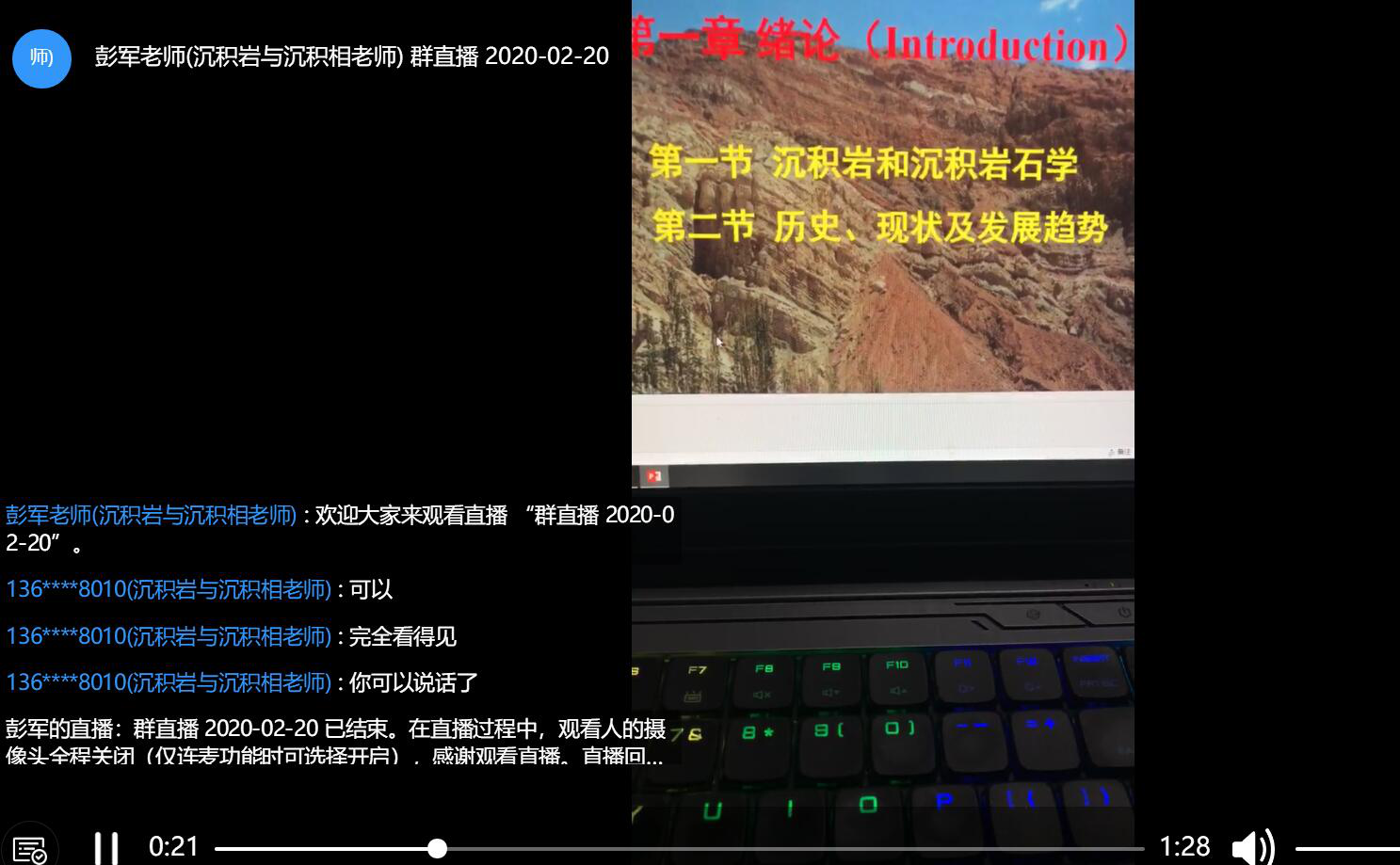 根據教務處和學院安排,沉積地質教研室組織各課程組進行了遠程上課的軟件、平臺學習、上課方式設計及課程組內部的多次視頻直播調試,提前對接學生加入對應課程組聯系群,指導學生注冊和熟悉愛課程、學習通、釘釘、QQ群直播等學習平臺和軟件,并進行預直播,確保正式行課的順利平穩進行。