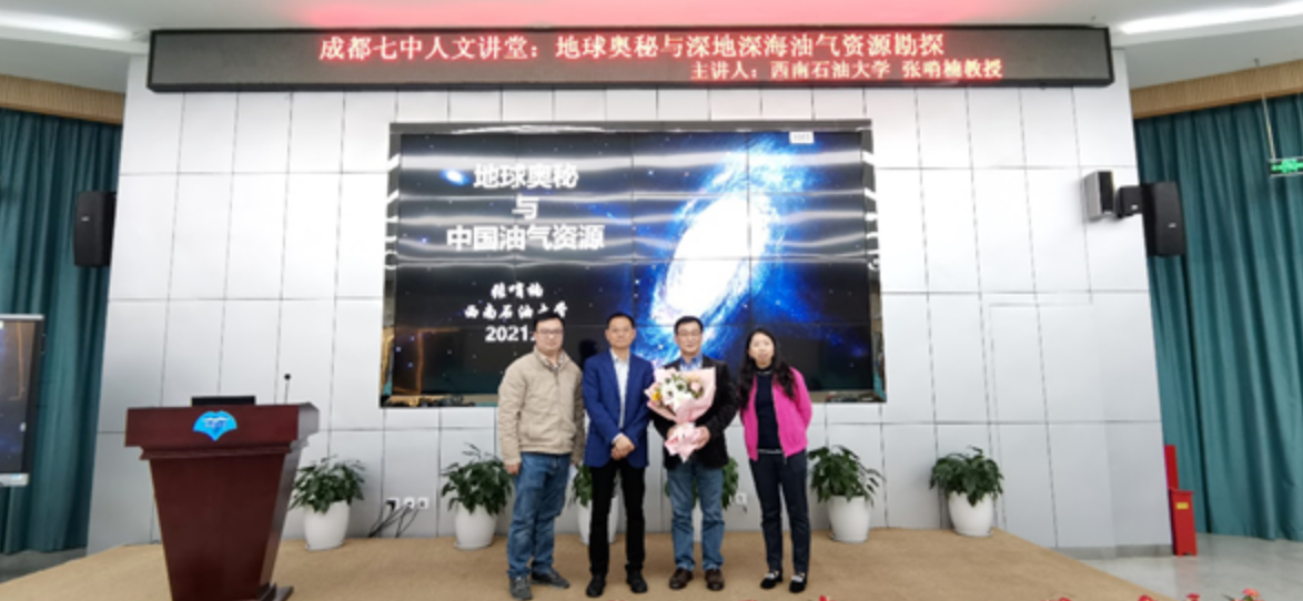 4月12日,成都七中建校116周年校慶之日,招生就業(yè)處組織的《“能源有你”科普講座進(jìn)中學(xué)系列活動》進(jìn)入成都七中(林蔭校區(qū))。我院張哨楠教授作為主講嘉賓為成都七中高一年級6個班級200余名同學(xué)作了題為“地球奧秘與中國油氣資源”的科普講座。