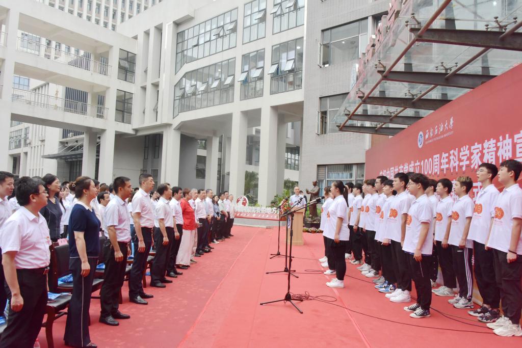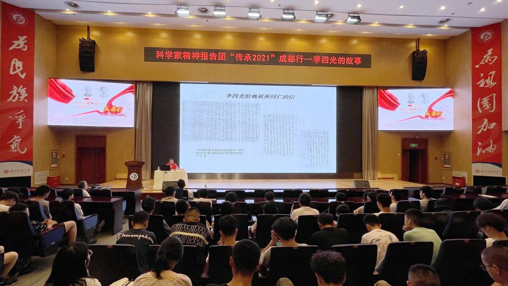在下午舉行的慶祝中國(guó)共產(chǎn)黨成立100周年科學(xué)家精神宣講報(bào)告會(huì)上,鄒宗平、**分別向我校師生作主題為《石跡耿千——李四光的故事》、《登上地球三極的中國(guó)科學(xué)家——地球環(huán)境學(xué)家劉東生院士的故事》的科學(xué)家精神宣講。(圖、文/謝娜)