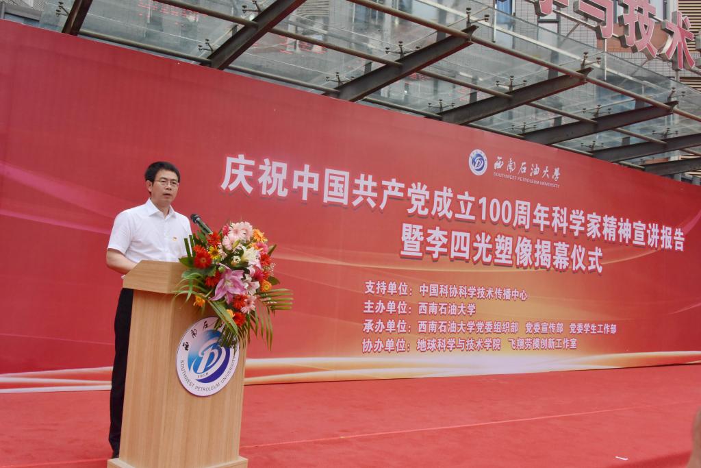 黨委常委侯忠建、易聯(lián)樹、黨委學(xué)生工作部部長(zhǎng)蒲勇以及地科院師生代表參加塑像揭幕儀式,地科院黨委書記朱江主持揭幕儀式。