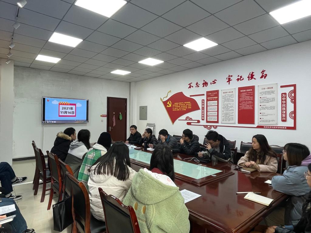 2021年12月16日,地科院巖土科研團隊黨支部在明辨樓A302組織學習黨的十九屆六中全會審議通過的《中共中央關于黨的百年奮斗重大成就和歷史經驗的決議》(以下簡稱《決議》),并召開預備黨員轉正大會,討論關于陳昱霏、黃夢婷和王慧3位同志的預備黨員轉正問題。支部全體黨員同志出席了本次大會。
