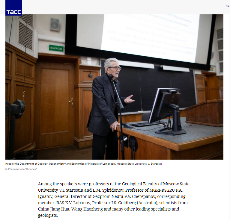 據悉,2月2日俄羅斯國家通訊社塔斯社以《在中國石化支持下,莫斯科大學成功舉辦斯米爾諾夫學術交流會》為題報道了此次學術會議。
