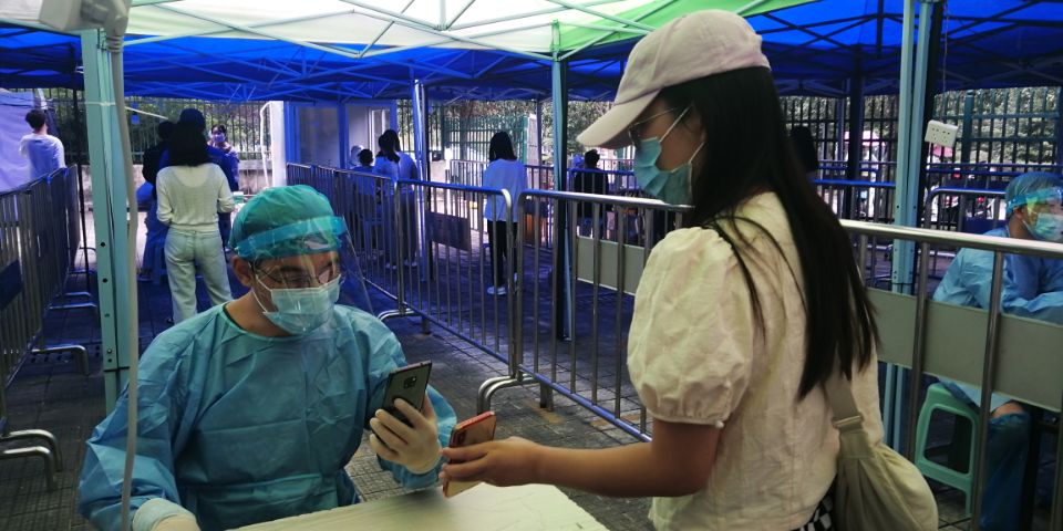 研究生黨員李怡霖深知在緊張的防疫工作面前,人員缺口會較大,于是主動報名成為志愿者,參與核酸檢測中秩序維護、核酸采集登記、幫助申領健康碼等工作。