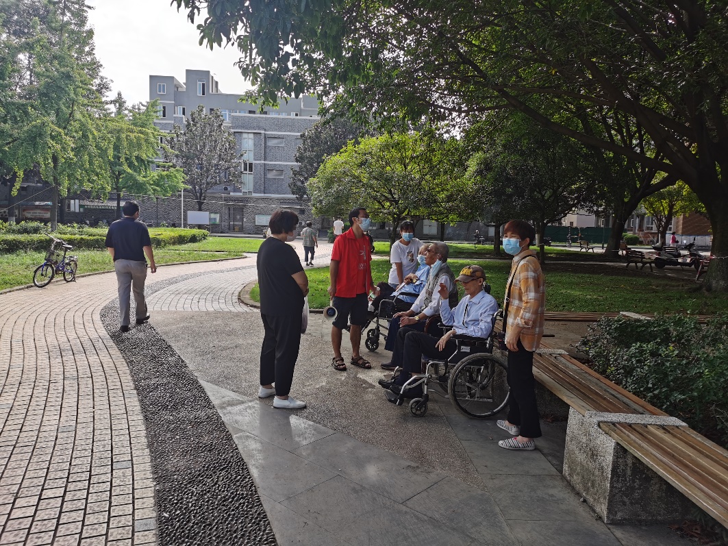 在校外,不少同學在自己的家鄉積極響應號召,聞令而動,參與到疫情防控工作中,發揮模范帶頭作用。賀詩棋為居民拿快遞、送物資、扔垃圾;梁家銀幫助村里的老人綁定、打開健康碼;駱豈婷在公園入口幫助群眾掃場所碼,普及疫情防控的知識;王博陽負責收運并處理“黃色醫廢袋”......