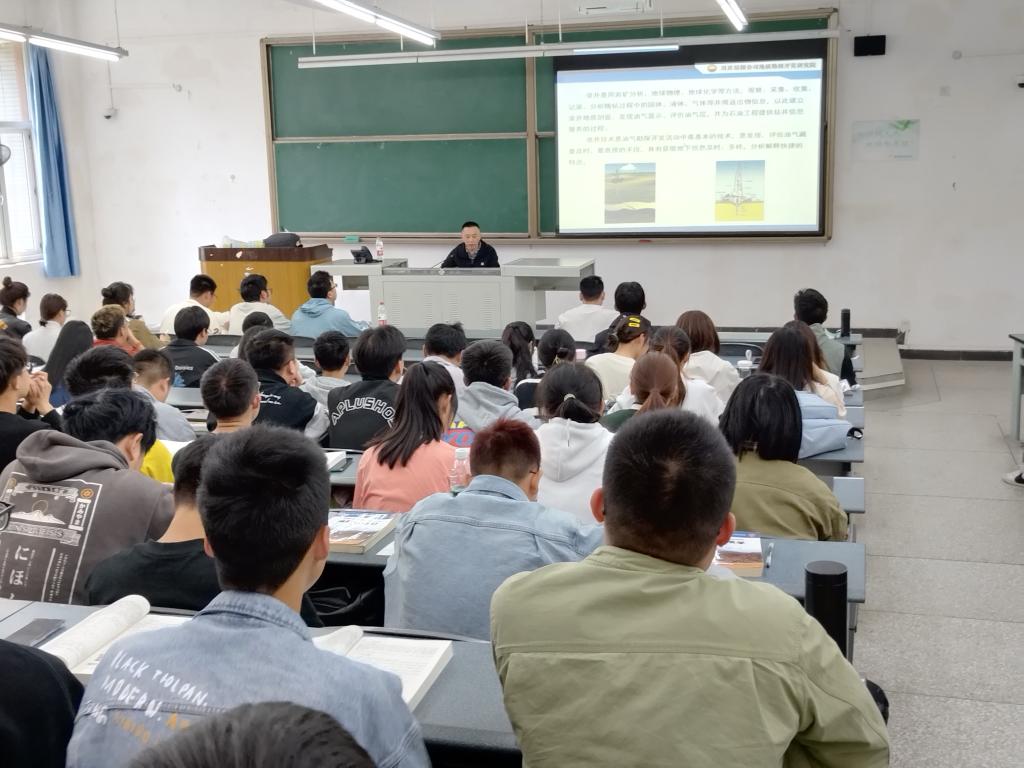 2023年4月4日下午,中石油川慶鉆探工程公司地質勘探開發研究院技術專家黃弋走進《油氣田地下地質學》課堂,在明辨樓C202教室給資源勘查工程2020級(含創新班)130多位同學講授了“綜合錄井”內容。
