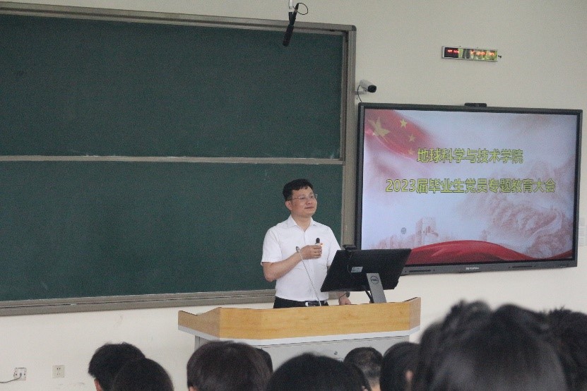 為進一步加強畢業(yè)生黨員黨性教育,強化黨員意識,6月5日下午,在思學(xué)樓B210教室組織召開地科院2023屆畢業(yè)生黨員專題教育大會。地科院黨委書副書記(主持工作)趙曉明教授,地科院常委副書記、紀(jì)委書記張勇副教授,研究生輔導(dǎo)員王晨晨老師,2019級輔導(dǎo)員上官晴天老師,全院畢業(yè)班黨員參加了本次專題教育大會,會議由地科院黨委組織員李明科老師主持。