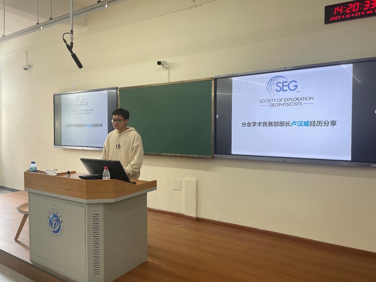 分會(huì)副主席吳映同學(xué)介紹了SEG國際性組織的相關(guān)背景以及西南石油大學(xué)SEG學(xué)生分會(huì)的部門組成、工作職責(zé)以及舉辦、參加的各項(xiàng)活動(dòng)。分會(huì)學(xué)術(shù)競(jìng)賽部部長(zhǎng)盧漢威同學(xué)分享了自己在SEG學(xué)生分會(huì)中,學(xué)到了很多有關(guān)地球物理的知識(shí),鍛煉了交流溝通能力,他呼吁新同學(xué)們珍惜美好的大學(xué)時(shí)光,平時(shí)多關(guān)注地球物理科技學(xué)術(shù)前沿知識(shí)和理論,提高專業(yè)能力和水平。會(huì)員黃玉聰同學(xué)從本科經(jīng)歷、學(xué)習(xí)方法、專業(yè)認(rèn)識(shí)、時(shí)間規(guī)劃等方面為低年級(jí)同學(xué)分享了自己的學(xué)習(xí)生活,他鼓勵(lì)大家加入SEG學(xué)生分會(huì),做好大學(xué)規(guī)劃,學(xué)好專業(yè)知識(shí),開闊知識(shí)視野,積極參加各項(xiàng)科研學(xué)術(shù)活動(dòng)。