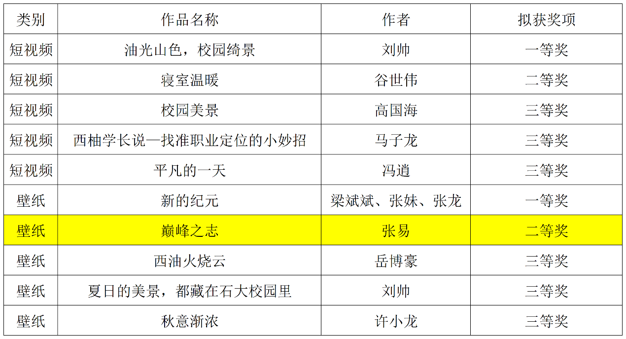 由我院研究生張易創(chuàng)作的壁紙《巔峰之志》斬獲“石大正能量”微視頻大賽二等獎(jiǎng)。
