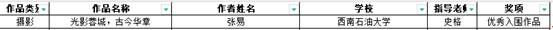 近日,教育部發布了第七屆全國大學生網絡文化節遴選結果,經作品征集、資格審核、專家遴選(初選、復選、終選)、作品政審等程序,地科院地質學21級碩士研究生張易的攝影作品《光影蓉城,古今華章》入選攝影類優秀入圍作品。