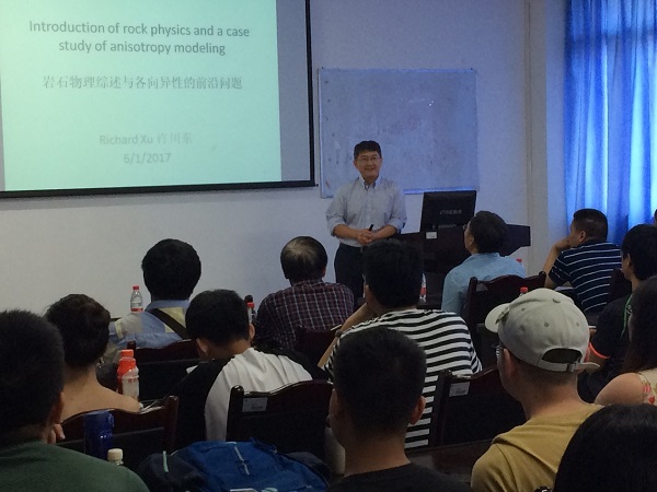 6月1日下午,我院地學專家講壇第60期邀請到加拿大卡爾加里大學地球物理博士許川東教授做題為《巖石物理綜述與各向異性的前沿問題》的學術報告,本次講座在明辨樓B412舉行,地科院尹成老師主持,地科院廖細明、楊巍、張固瀾老師及全校相關學科領域師生參加了本次報告會。