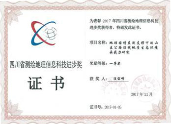 我院青年教師汪宙峰作為項(xiàng)目負(fù)責(zé)人參與建設(shè)的《地下國(guó)情監(jiān)測(cè)支撐下的山區(qū)公路沿線(xiàn)地質(zhì)生態(tài)環(huán)境承載力研究》獲得2017年四川省測(cè)繪地理信息科技進(jìn)步個(gè)人一等獎(jiǎng),同時(shí)共同參與本項(xiàng)目的地信教研室團(tuán)隊(duì)也獲得團(tuán)隊(duì)一等獎(jiǎng)。