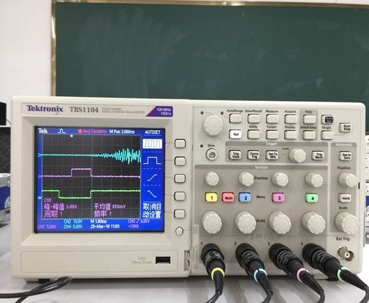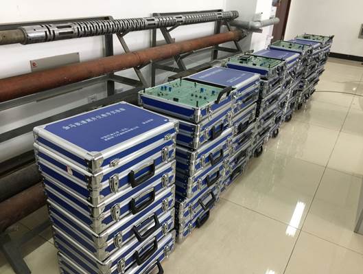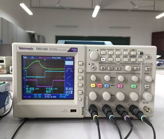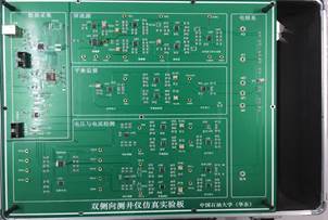 2017年12月,我院購置的測井仿真實驗設備到貨。該套設備共包括雙側向、聲波、放射性和遙測4種電路板(圖1),每種電路板為11套,共計44套;TBS1104型示波器11臺;計算機11臺。經過我院實驗中心劉麗老師3個多月的調試(圖2),該套設備于今年4月份正式投入本科教學。