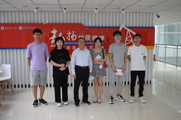 參觀完畢后,研究生會同學在我院創辦的“弘揚地質精神”實踐育人示范基地對江同文教授進行了簡單采訪,面對優秀的研究生大師兄同學既興奮又緊張,他們提出了關于學習、工作、生活等方方面面的問題,江教授一一回答,對一些重要的問題他著重講述,解答同學們的疑惑,他對師弟師妹們的成長尤為重視,幾次強調要“趁年輕多奮斗”。最后,江同文教授對地科院全體同學提出建議:希望同學們一定要努力學習、學會學習知識、學到真正的知識,并運用在祖國的發展建設中去,不負韶華。