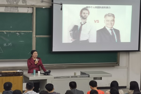 林老師以自己的所見所聞為同學們生動形象地講解了社交禮儀的重要性,同學們聽了林老師的講座后都獲益匪淺。通過開展此次講座,同學們意識到了提升形象、促進溝通,潤滑人際關系的重要性,相信大家在以后的求職面試中能更加自信從容。(圖/文 黃 龍)