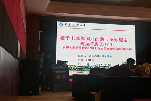 賈承造,周守為,趙文智,鄒才能,劉合,李寧等多名院士,以及來自中國石油大學、西南石油大學、成都理工大學、西華大學等高校和各個油田的700余名專家、代表參加了本次會議。專家就天然氣勘探開發新理論、新技術的發展與前沿課題研究作主題報告,展現最新研究進展與創新成果,以促進學科的發展和重大工程技術難題的解決。我院碩士生陳康參加了本次會議,在地質勘探分會場作了《基于電成像測井的薄互層砂泥巖、煤層識別及應用-以鄂爾多斯盆地西北緣上古生界盒8段與山西組為例》的學術報告,并與各地高校與科研院所的學者就當前地學領域研究熱點進行了深入討論,充分展示了我校青年學者的科研熱情,增進了其他科研院所對學校的了解。