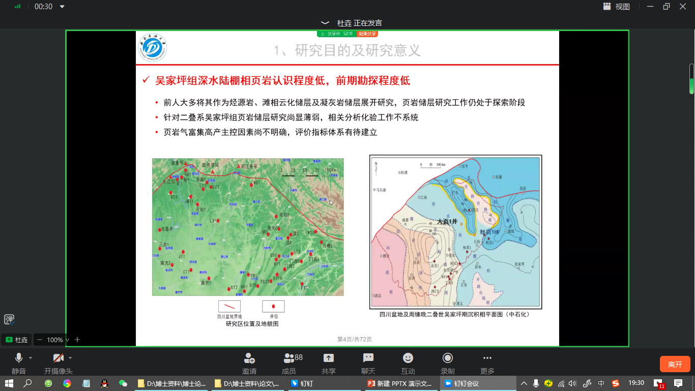2023年5月11日19:00-20:00,地科院研究生會、地科院學生會邀請到龐謙、杜垚兩位優秀的博士研究生學長于線上開展以以《海相淺水碳酸鹽巖臺地環境下流紋質火山灰對有機質富集的影響——來自川東地區茅口組的啟示》、《四川盆地東北部二疊系吳家坪組海相頁巖氣形成條件及富集規律》為題的學術分享。
