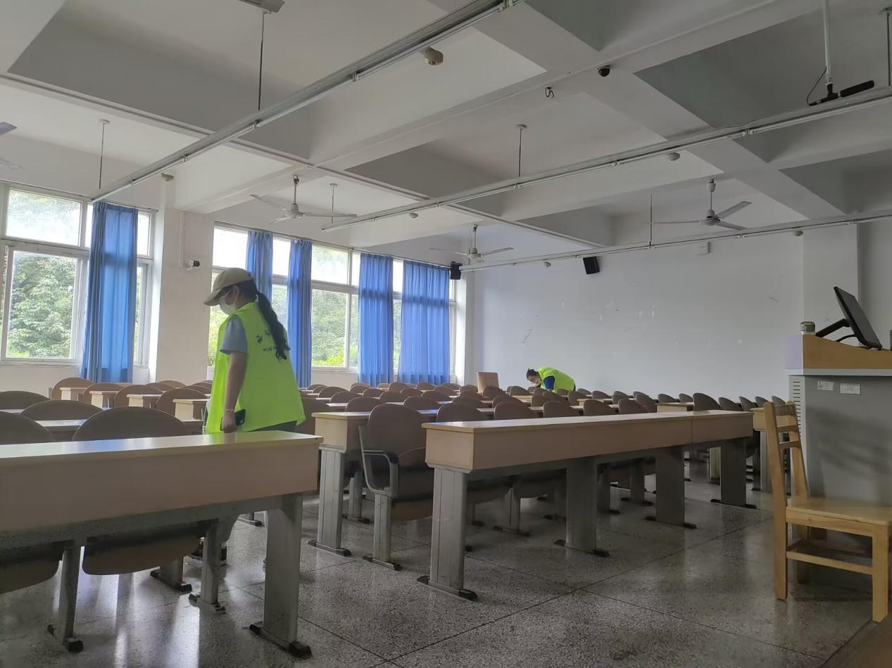 撿拾課桌里面的垃圾,整理講桌,清掃過道......來來往往的人影,是志愿者們?cè)谟袟l不紊的進(jìn)行清掃活動(dòng)。揮動(dòng)掃帚的每一次,都是對(duì)自我勞動(dòng)意識(shí)的增強(qiáng)。地科院的學(xué)子們堅(jiān)信勞動(dòng)意識(shí)的重要性,堅(jiān)持每周日常勞動(dòng),用實(shí)際行動(dòng)讓勞動(dòng)意識(shí)永駐心間,用雙手建設(shè)美麗校園!