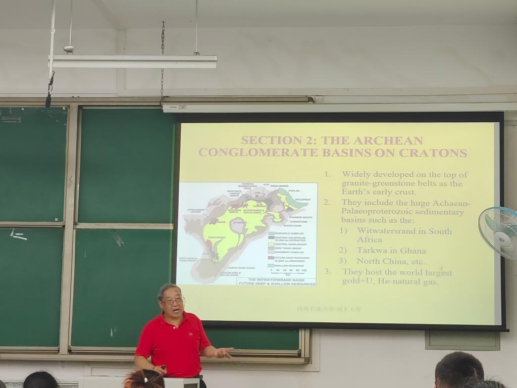 會議伊始,陳雷老師向同學介紹了趙寶金教授并對趙教授的到來表示歡迎與感謝。本次講座以沉積盆地為主線,緊密結(jié)合地球演化,集中于傳統(tǒng)的兩個大地構(gòu)造單元如克拉通和造山帶比較系統(tǒng)地講解和詮釋從花崗綠巖帶,太古代含金鈾礫巖型盆地,元古代鐵,錳盆地,古生代能源資源盆地,新生代沙漠及黃土高原等礦產(chǎn)和自然資源的分布特點和存在的規(guī)律。趙寶金教授向同學們介紹了顯生宙盆地、新生代盆地和克拉通上的太古宙礫巖盆地等一系列盆地及其代表中國西北的鄂爾多斯、中國西南的四川等盆地是屬于顯生宙盆地的范疇,中國的黃土高原、撒哈拉沙漠和卡拉哈里沙漠等屬于新生代盆地的范疇。除此之外,趙寶金教授還通過穿越整個南非的地質(zhì)刨面向同學們揭示了克拉通與造山帶的關(guān)系。