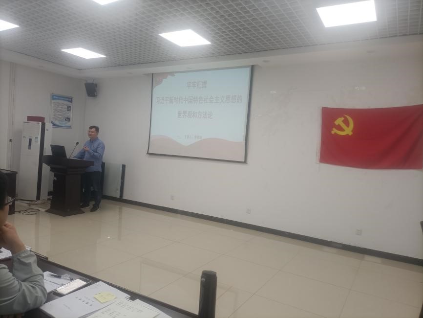 緊接著,在李明科老師的帶領(lǐng)下,全體同志開展了“牢牢把握習(xí)近平新時代中國特色社會主義思想的世界觀和方法論”主題教育學(xué)習(xí)。李老師首先向我們介紹了開辟馬克思主義中國化時代化新境界。隨后,李老師就開辟馬克思主義中國化時代化新境界展開了講解分析,指出“我們黨勇于進(jìn)行理論探索和創(chuàng)新,以全新的視野深化對共產(chǎn)黨執(zhí)政規(guī)律、社會主義建設(shè)規(guī)律、人類社會發(fā)展規(guī)律的認(rèn)識,取得重大理論創(chuàng)新成果,集中體現(xiàn)為習(xí)近平新時代中國特色社會主義思想?!?/p>