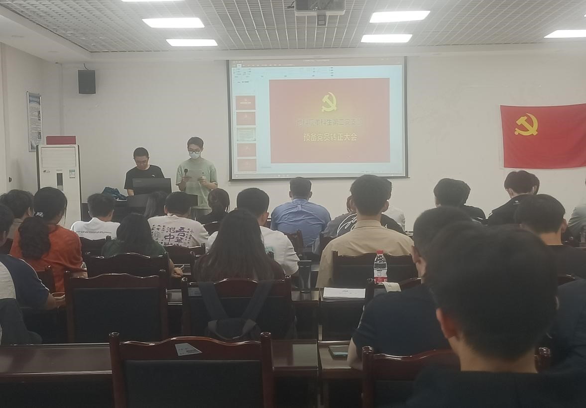 大會伊始,支部副書記李青洋介紹了出席人數(shù)、大會流程等,之后宣讀了轉(zhuǎn)正人員名單,潘廣宇等14名同志相繼匯報預(yù)備期間自己在思想、生活、工作等各方面的情況,向組織提出轉(zhuǎn)正申請。接下來考察人介紹申請轉(zhuǎn)正人員在預(yù)備期間的表現(xiàn)并發(fā)表意見。經(jīng)過支部大會充分討論,在場有表決權(quán)的正式黨員8票全票通過了14名預(yù)備黨員的轉(zhuǎn)正申請。隨后,12名發(fā)展對象逐一介紹自身情況,闡述入黨動機,介紹人就其是否符合黨員條件發(fā)表意見。經(jīng)與會中共黨員投票表決,大會一致同意接收沈旭康等12名同志為中共預(yù)備黨員。在申請人發(fā)言中,各位同志針對自身存在的不足明確了努力方向,表示將進(jìn)一步加強學(xué)習(xí),努力工作,勇于擔(dān)當(dāng),充分發(fā)揮一名共產(chǎn)黨員的先鋒模范作用。