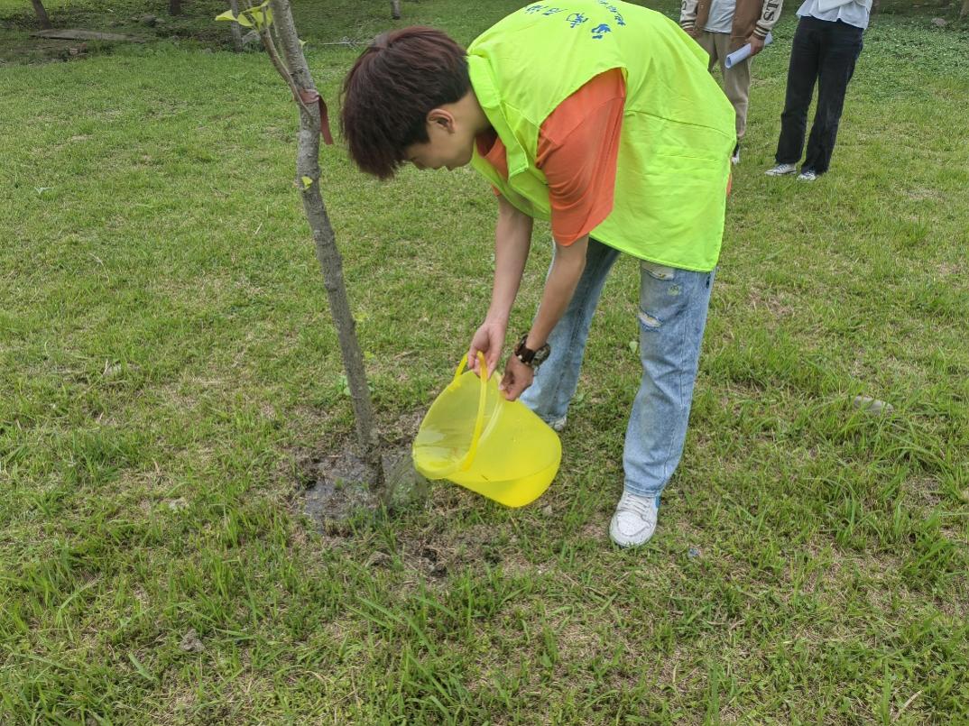 春風十里,不如一抹綠意。為了小樹能夠茁壯成長,同學們挽起袖子,對雜草以及垃圾進行清理;揮動鐵鍬,為小樹松土;提起水桶,滋潤了小樹干涸的根系。