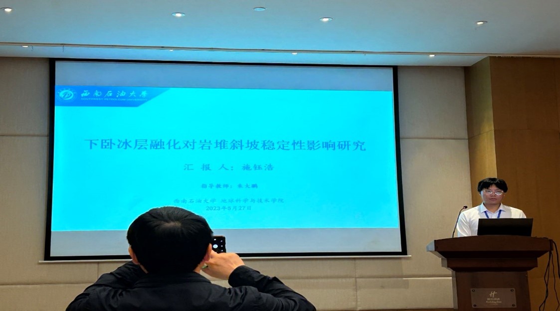 本次會議以“重大巖體工程中的力學問題與數(shù)值挑戰(zhàn)”為大會主題,共設置18個分會場和3個研究生論壇,安排學術報告220個。我院2022級碩士研究生劉寒、施鈺浩在研究生分會場分別作了題為《巖堆體物理力學特性及失穩(wěn)概率研究》、《下臥冰層融化對巖堆斜坡穩(wěn)定性影響研究》的專題報告,并得到了會場專家與嘉賓的充分肯定。